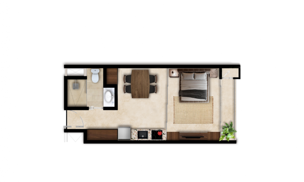 Conformado por 53 departamentos, Soha es un desarrollo diseñado con amenidades como piscina, sala de juntas y rooftop. El modelo Solo tipo estudio contará con una habitación y baño completo.