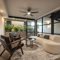 El departamento cuenta con dos amplias habitaciones, la principal con baño propio, además dependiendo de su ubicación dentro del edificio puede tener: terraza, jardín o balcones.