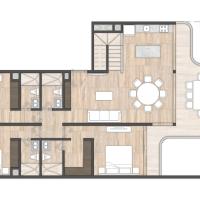 Esta opción se caracteriza por tener 3 habitaciones cada una con baño y 2 cajones de estacionamiento.