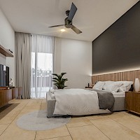 El modelo Brisa se caracteriza por contar con dos amplias habitaciones, una de ellas con baño completo y área de clóset vestidor.