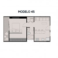 Inicial estará conformado de 72 departamentos distribuidos en dos torres con tres niveles cada una, además de un área comercial con 14 locales. Este modelo se caracteriza por contar con una habitación con área de clóset vestidor.