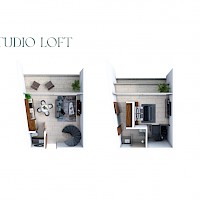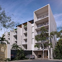 El desarrollo conformado por 26 departamentos, distribuidos en 5 niveles, caracterizados por su equipamiento y espacios ideales, además este modelo tiene una distribución en dos niveles con la habitación en planta alta.