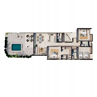 El desarrollo estará conformado de 72 departamentos distribuidos en 8 torres con 3 niveles cada una. El modelo pentgarden Pelícano cuenta con una distribución en una sola planta con tres habitaciones, terraza y piscina privada, además de ubicarse exclusivamente en la planta baja de cada torre.