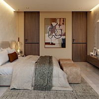 Este modelo se caracteriza por tener dos niveles y tres habitaciones, en donde una de ellas se encuentra en planta baja. Además de tener vistas panorámicas en todo el departamento.