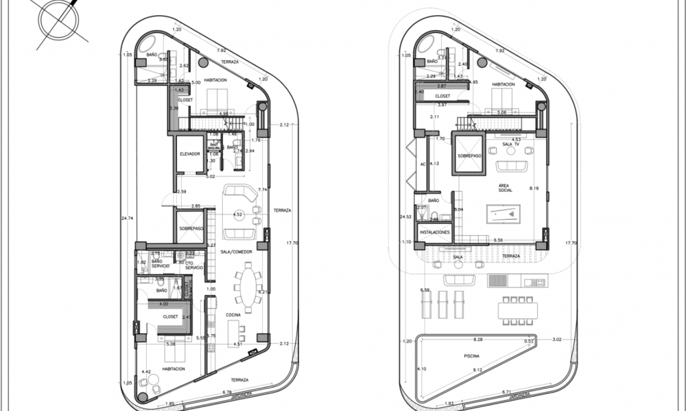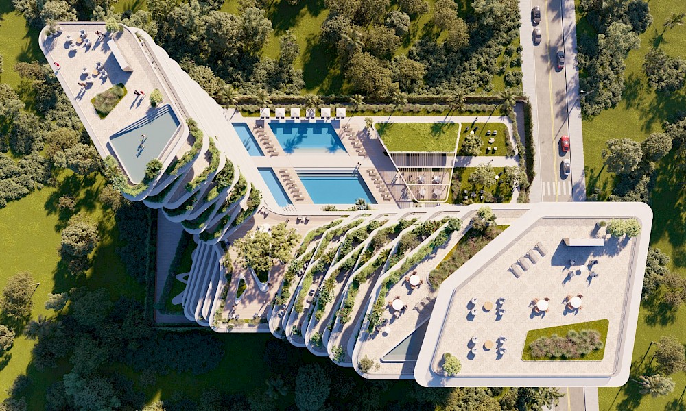 Este departamento se caracteriza por una tener dos niveles con vistas panorámicas y terrazas rodeando todo el Penthouse. Además cuenta con una de las más majestuosas áreas sociales y terrazas de todas las torres.