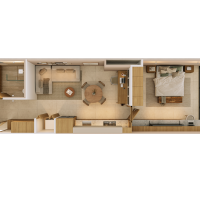 El modelo tipo estudio Barán se caracteriza por la distribución de sus espacios bien aprovechados y contar con la opción de tener un área de estudio privada.