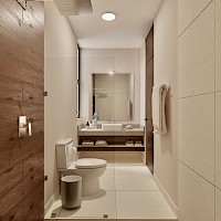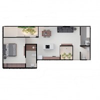 El modelo B se caracteriza por contar con una habitación con baño propio y un baño de visitas, además de estar ubicado en planta baja.