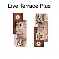El modelo Live Terrace Plus se caracteriza por contar con una habitación con baño completo y una amplia terraza que abarca el área de la sala-comedor.