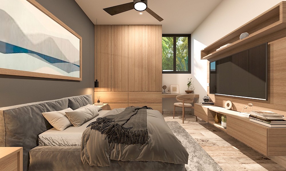 Este modelo se caracteriza por contar con dos habitaciones, la principal con baño propio y clóset vestidor.