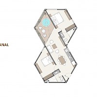 El modelo Panal se caracteriza por contar con dos habitaciones y vistas hermosas de los atardeceres, ya que cuenta con 34 m lineales de hermosas playas de la denominada "costa esmeralda".