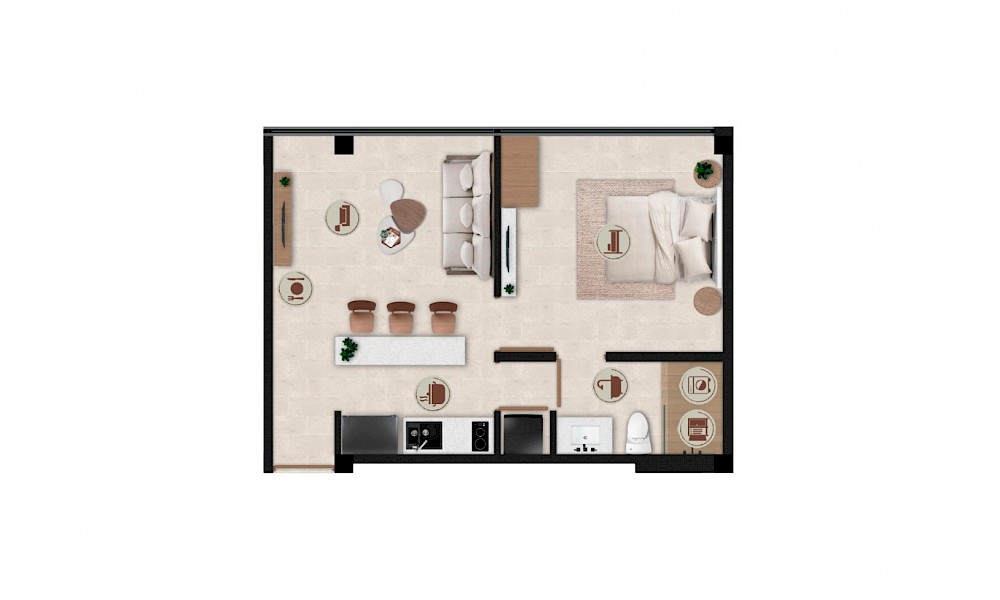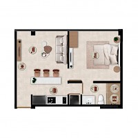 Solara está conformado por 21 departamentos divididos en tres niveles. Los departamentos cuentan con una habitación y baño compartido con área social.