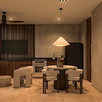 Este modelo se caracteriza por contar con una distribución armoniosa con una amplia área de sala-comedor, una habitación con una terraza techada, dando un total de 50 m2, además de una bodega y espacio de estacionamiento.