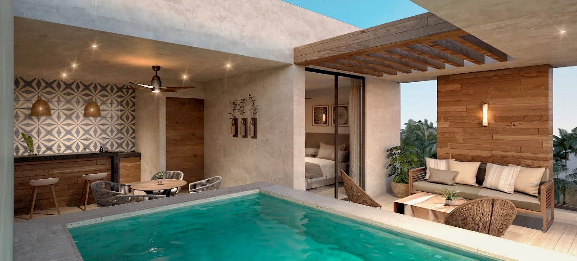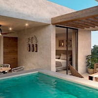 El penthouse 2 se caracteriza por contar con tres amplias habitaciones, la principal en el segundo nivel con piscina privada y hermosas vistas al encontrarse en el piso más alto de la torre.