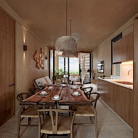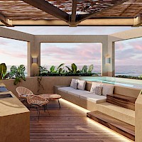 El penthouse Colmena se caracteriza por contar con tres habitaciones y vistas hermosas de los atardeceres desde el rooftop, ya que cuenta con 34 m lineales de hermosas playas de la denominada "costa esmeralda".