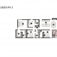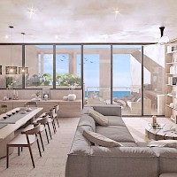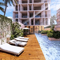 El modelo penthouse 2 se caracteriza por contar con tres amplias habitaciones y una terraza privada con piscina.