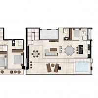 Los departamentos se caracterizan por contar con acabados de lujo, diseño exclusivo y equipamiento, además el penthouse modelo Santiago se distingue por contar con una espectacular terraza techada con piscina y área de camastros, adicional al estudio y sus tres habitaciones amplias habitaciones.