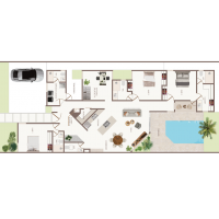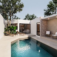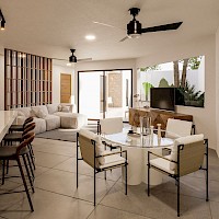 Esta propiedad se caracteriza por estar distribuida en una sola planta, con un diseño único y moderno. Con espacios amplios en la zona de la sala, comedor y cocina, todas con vistas hacia el área social y jardín.