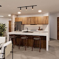 - Cocina con barra desayunadora