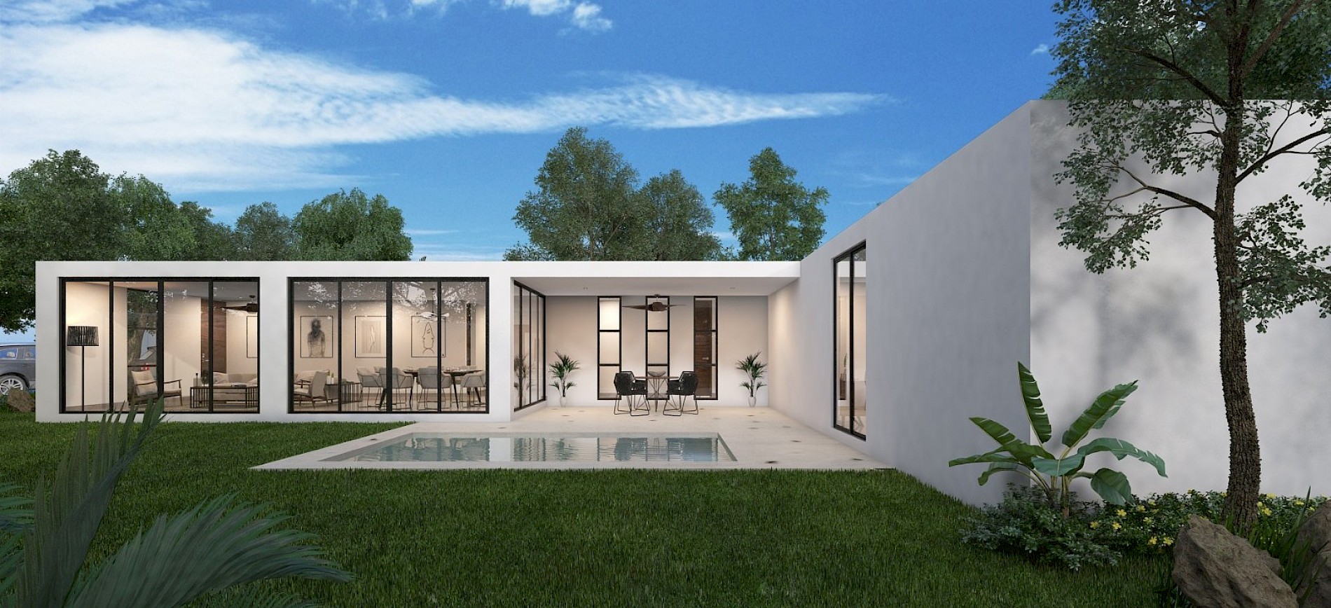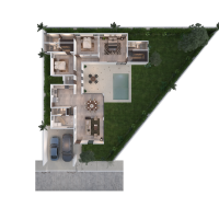 Este modelo se caracteriza por contar con una distribución en una sola planta con tres amplias habitaciones, cada una con clóset vestidor.
