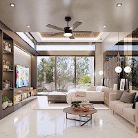 El modelo 31 se caracteriza por tener un amplio terreno de 1000m2 con una distribución en dos plantas con cuatro habtaciones, una de ellas en planta baja para mayor comodidad. Además la exclusiva residencia cuenta con un sistema inteligente de Domótica para la correcta automatización de sus diferentes áreas.