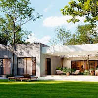 La residencia está rodeada de kilómetros de áreas verdes y amenidades como lagos, playas, una isla con muelle y tirolesa, casa club y demás variedad para pequeños y grandes. El modelo se caracteriza por tener una distribucuón en una sola planta con 3 amplias habitaciones y una amplia terraza techada para el área de piscina.