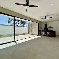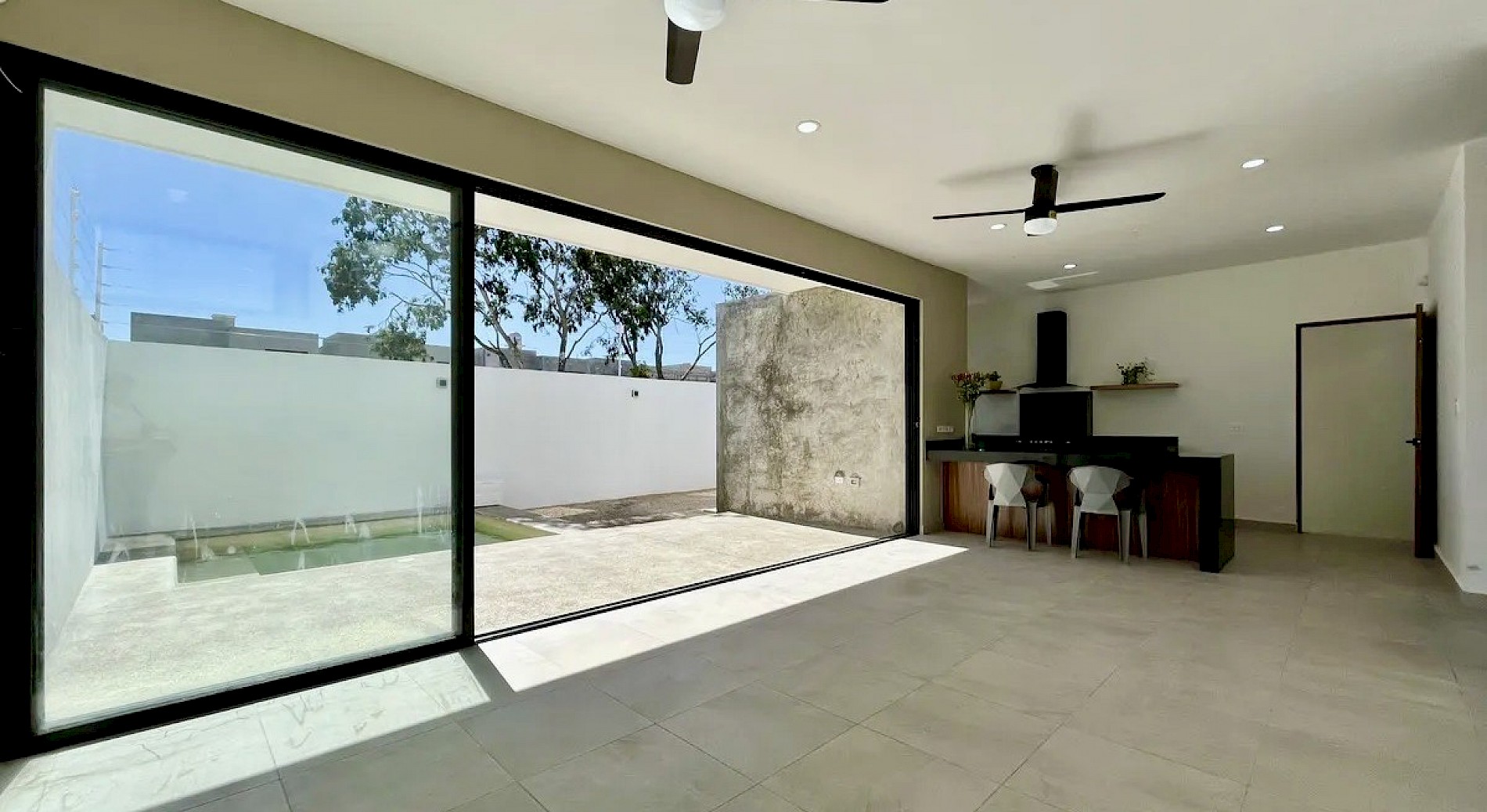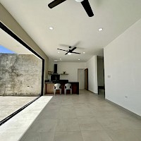 Esta casa se caracteriza por sus amplios espacios, con tres habitaciones y una sala de TV con opción de área para oficina.