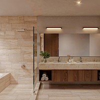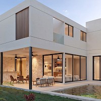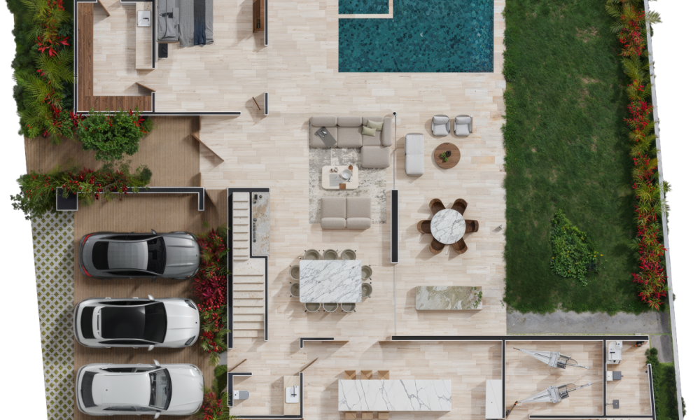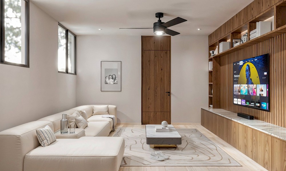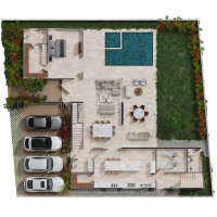 Este modelo se caracteriza por tener una armoniosa distribución en un extenso terreno con cuatro amplias habitaciones, un estudio y sala de TV. Además la recámara principal cuenta con un área de terraza.