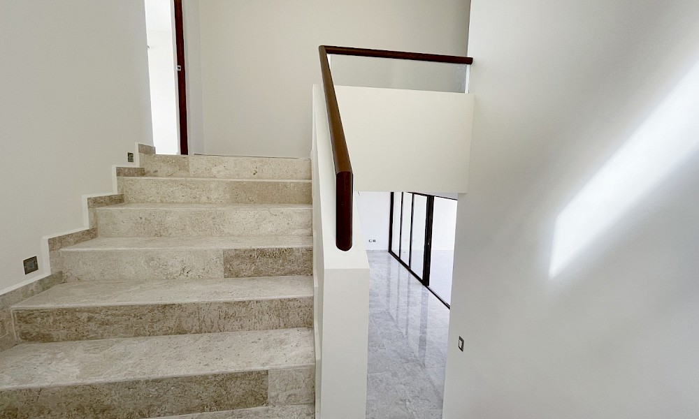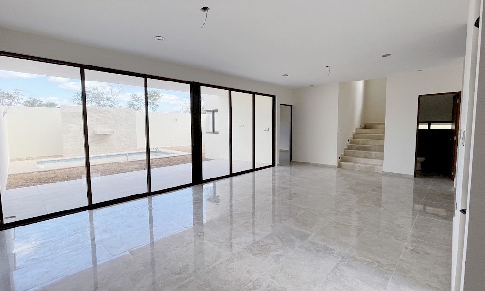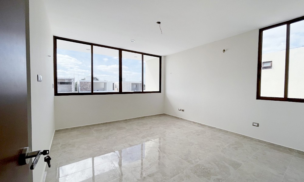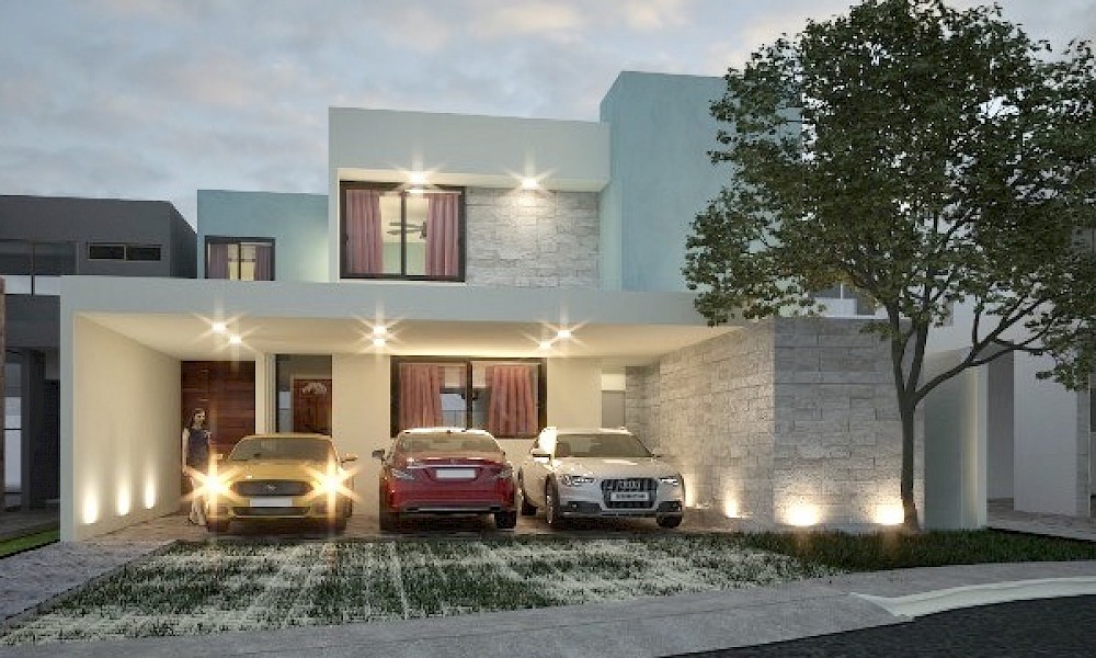 Este modelo se caracteriza por tener una armoniosa distribución en dos niveles con cuatro amplias habitaciones, una de ellas en planta baja además de un family room en el segundo nivel.