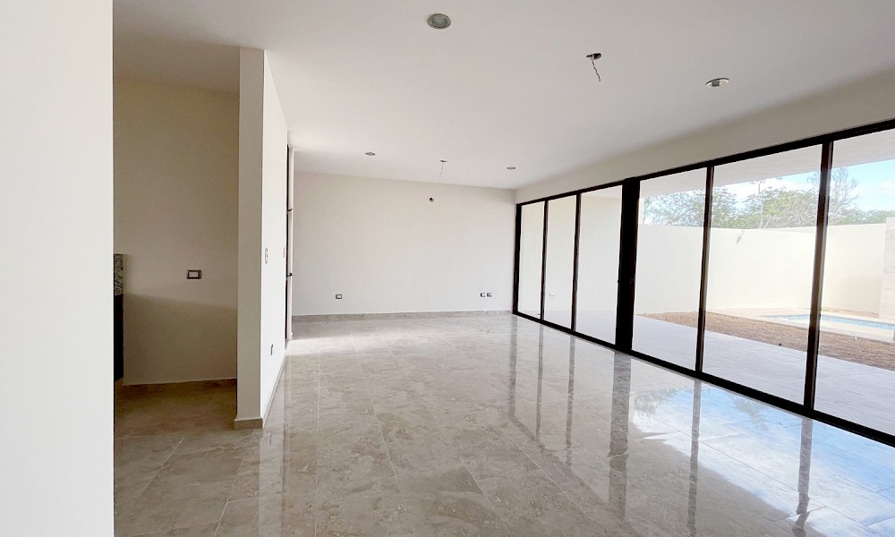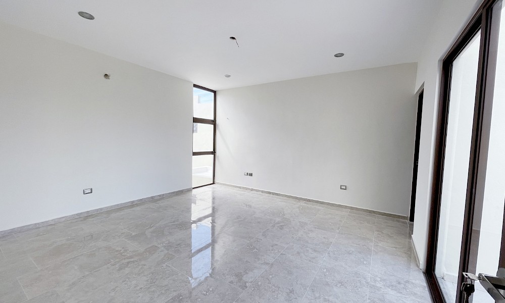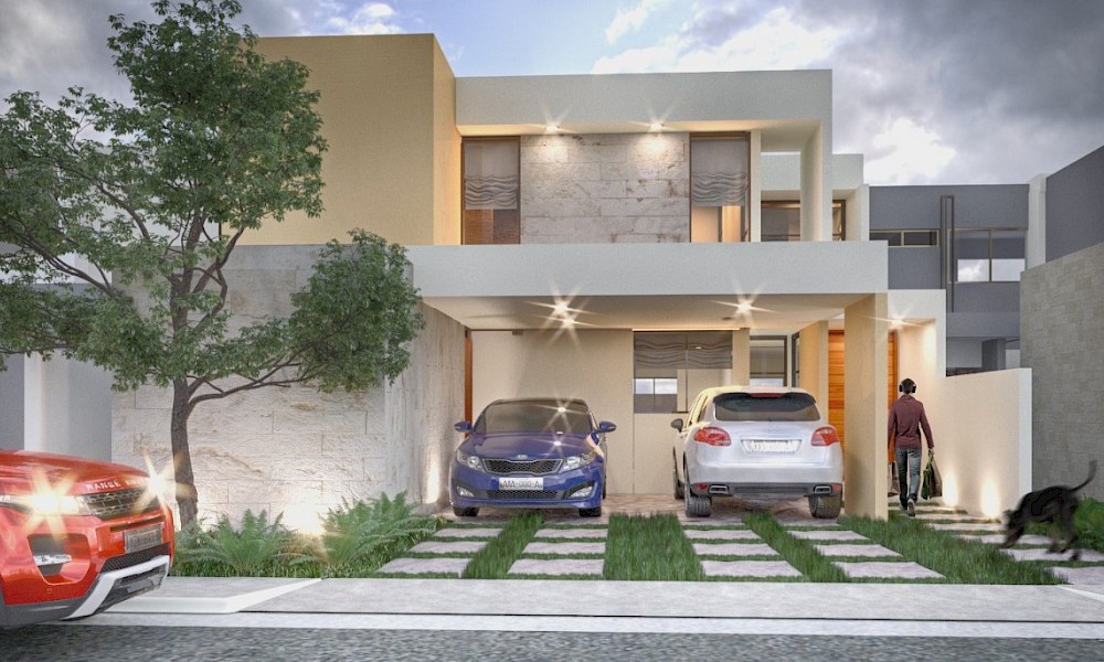 Este modelo se caracteriza por tener una armoniosa distribución en dos niveles con cuatro amplias habitaciones, una de ellas en planta baja además de un family room en el segundo nivel.