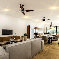 Esta propiedad se caracteriza por estar distribuida en una sola planta, con un diseño único y moderno, espacios amplios en la zona de sala, comedor y cocina con vistas hacia el área social y de jardín.