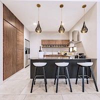 - Cocina con barra desayunadora