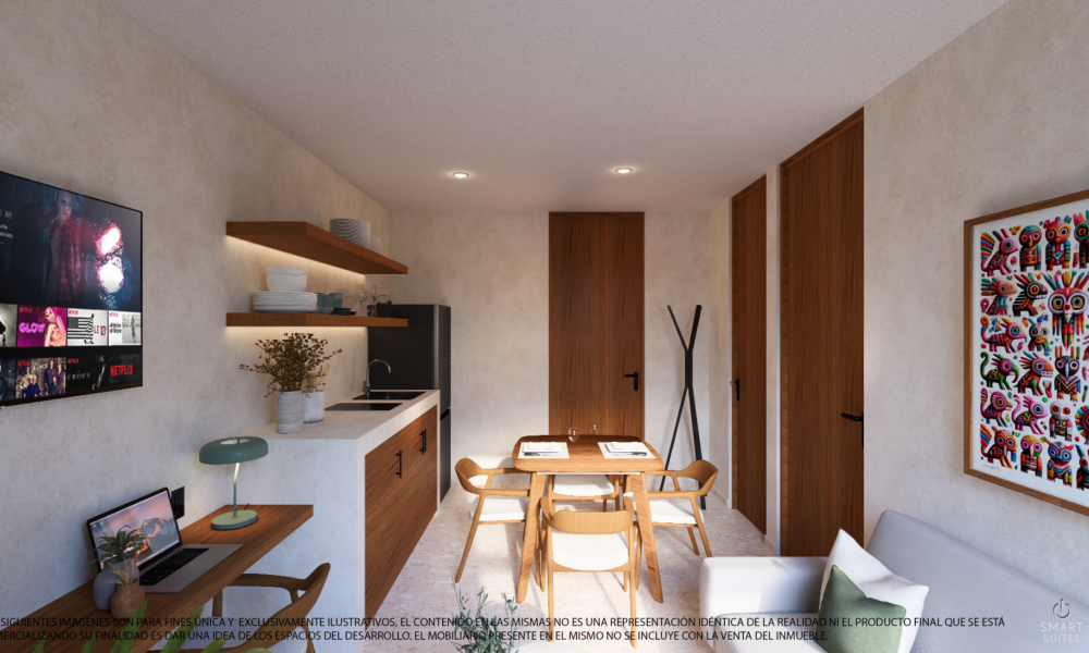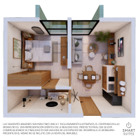 El desarrollo estará conformado de 25 unidades totales. El modelo Suite 2 se caracteriza por contar con una habitación con baño completo, una una cocina compacta y venir completamente amueblado.