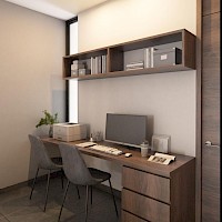 Esta opción se caracteriza por estar distribuida en dos niveles con tres amplias habitaciones en planta alta, además de una sala de tv y un área para home office.
