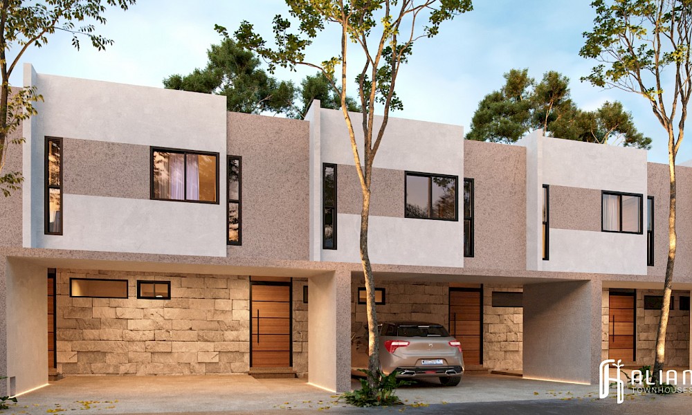 Preventa de townhouses en Alian, ubicada en el fraccionamiento Real Montejo al norte de Mérida. La zona es de un entorno campestre residencial con amplias avenidas y áreas totalmente arboladas y todos los servicios a cortas distancias.