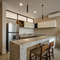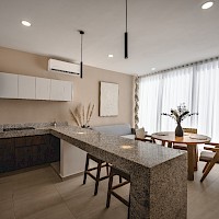- Cocina con barra desayunadora