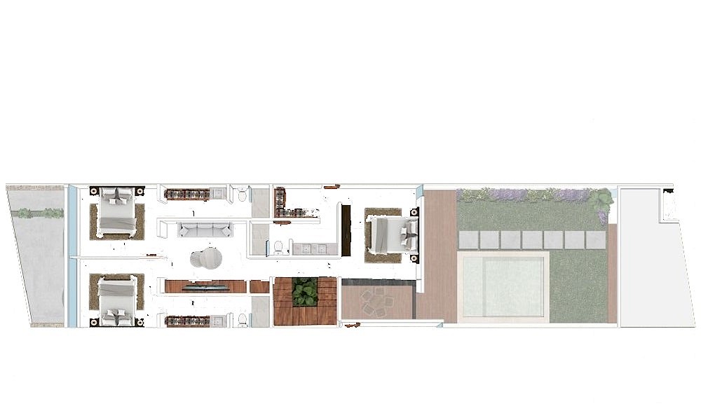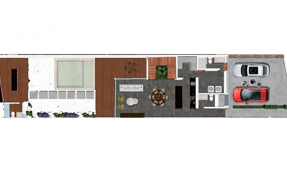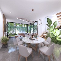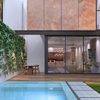 Noretta es un pequeño complejo de 5 townhouses que se caracterizan por sus espacios bien aprovechados con tres amplias habitaciones en planta alta, un bar en el área de jardín, así como tener un sistema inteligente controlado por Alexa.