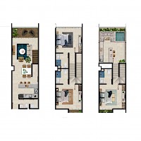El modelo C se caracteriza por contar con tres amplias habitaciones, además de una terraza privida en planta baja.