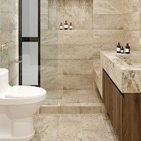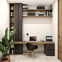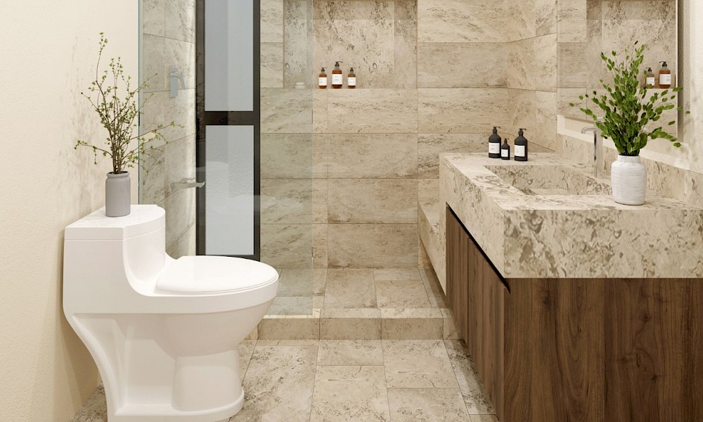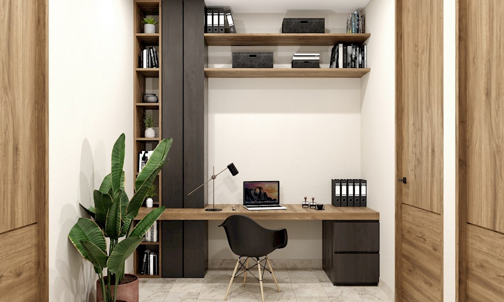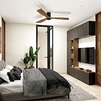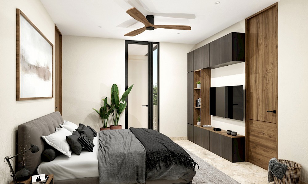 Este modelo se caracteriza por tener dos habitaciones, en donde la principal cuenta con clóset vestidor y baño propio, además de un área para estudio o clóset de blancos.
