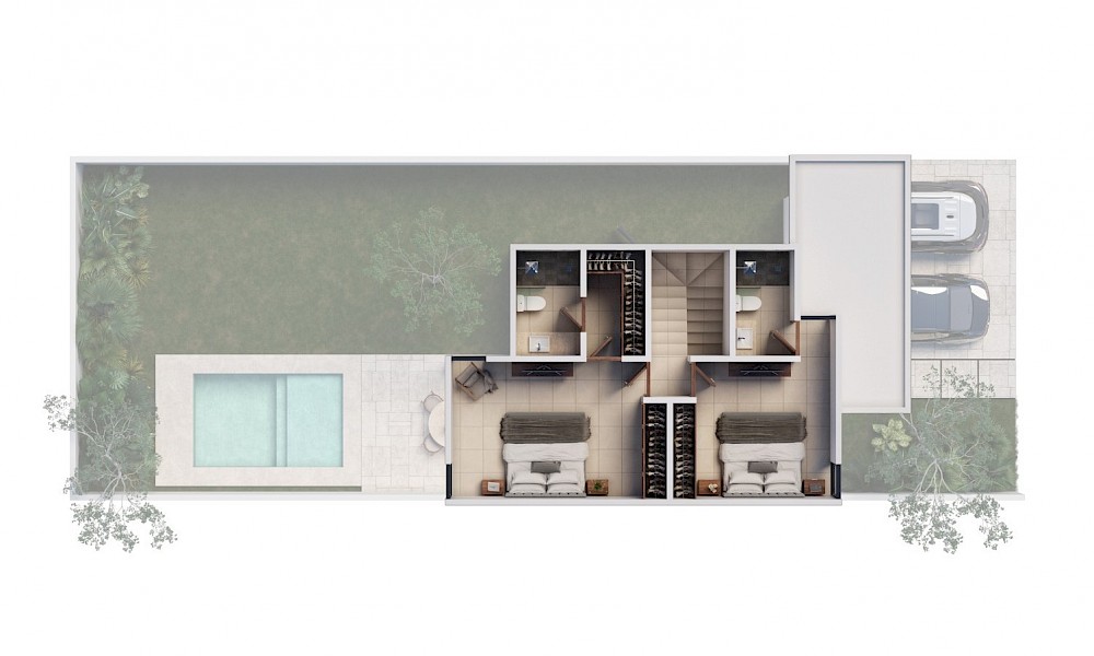Gran Bosco estará conformada de 352 unidades dividida en cuatro etapas. El modelo A9-139 se caracteriza por contar con un frente de 9m con dos habitaciones en planta alta, cada una con baño propio, además de una terraza techada.