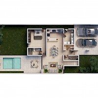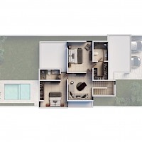 Gran Bosco estará conformada de 352 unidades dividida en cuatro etapas. El modelo E11-203 se caracteriza por contar con un frente de 11m con tres habitaciones, dos de ellas en planta alta junto con una sala de T.V.