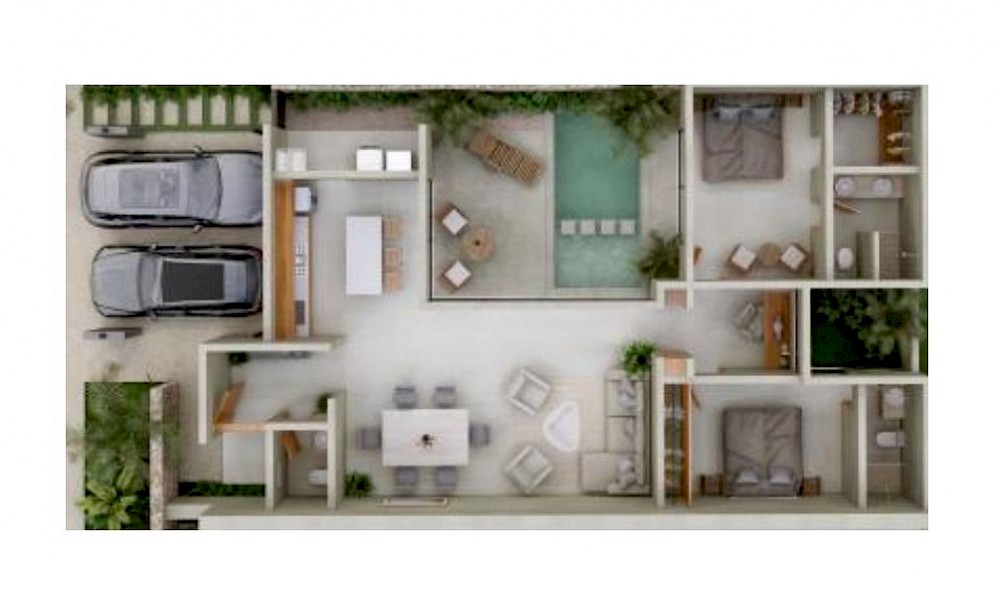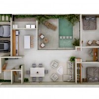 Este modelo se encuentra distribuído en un solo nivel y cuenta con 2 cómodas habitaciones.