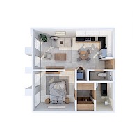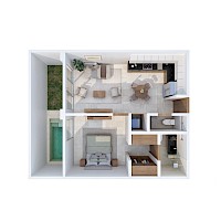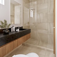 Este modelo se caracteriza por contar con una habitación con baño propio y un baño para visitas.