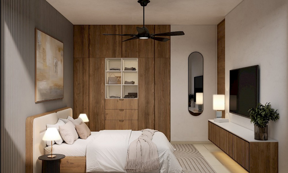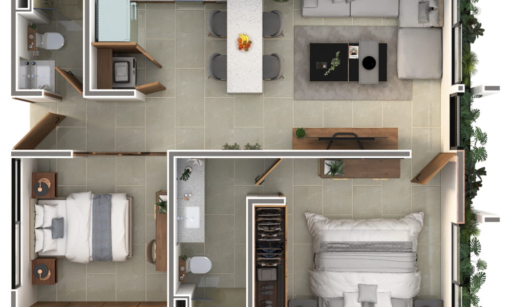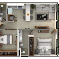Nikora estará conformado de 42 departamentos divididos en dos torres de cuatro niveles y contará con amenidades propias como rooftop y área de asadores, entre otros. Este modelo se caracteriza por contar con dos habitaciones, la principal con baño propio.