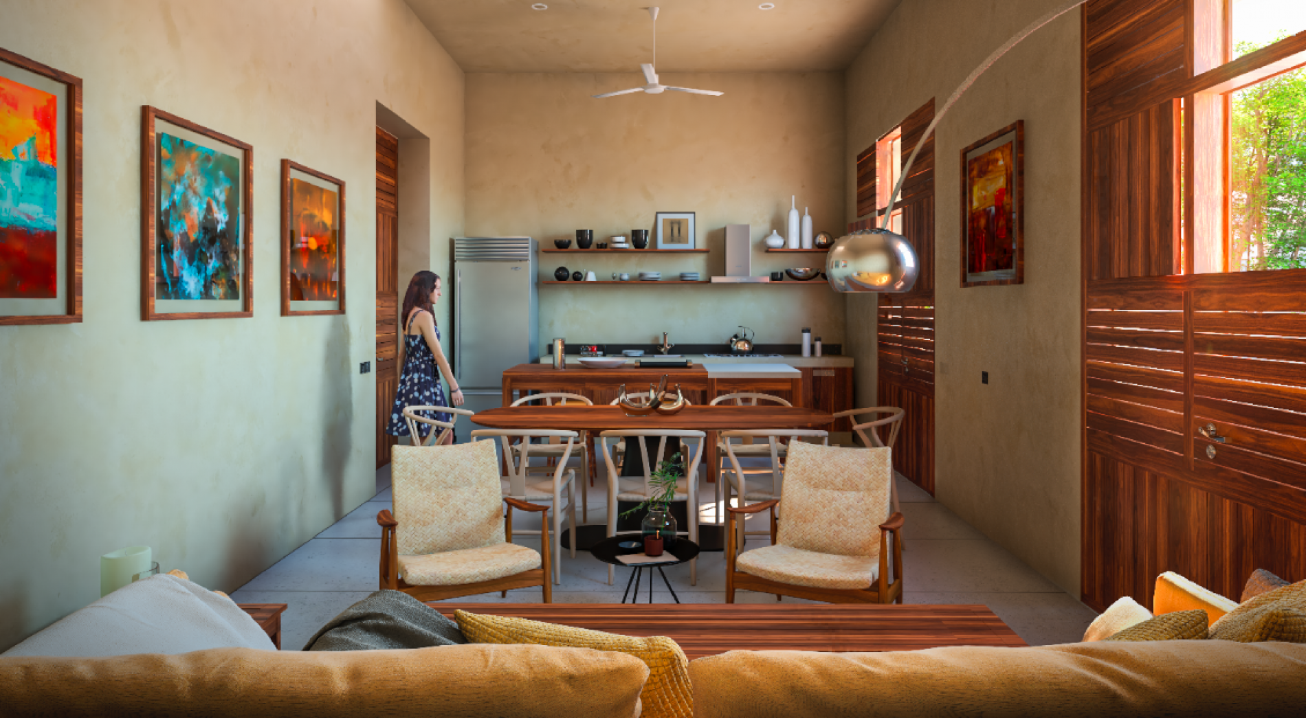 Esta propiedad se caracteriza por tener dos habitaciones en planta baja, y en planta alta, un área social ideal para disfrutar de las tardes tranquilas de la ciudad.