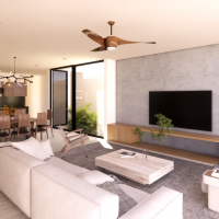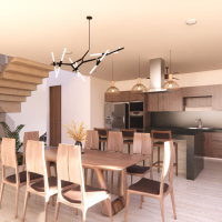 Este modelo se caracteríza por brindarnos espacios muy cómodos, cuenta con cuatro habitaciones completas, una de ellas situada en planta baja. Además de una estancia de sala-comedor muy cómoda.