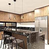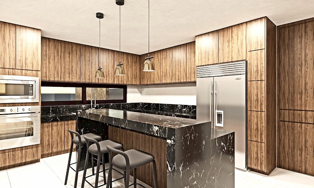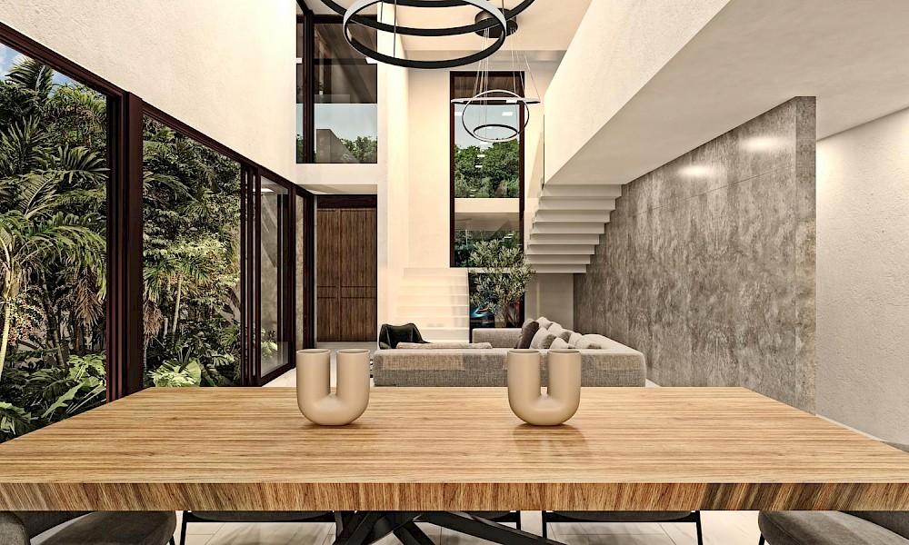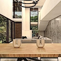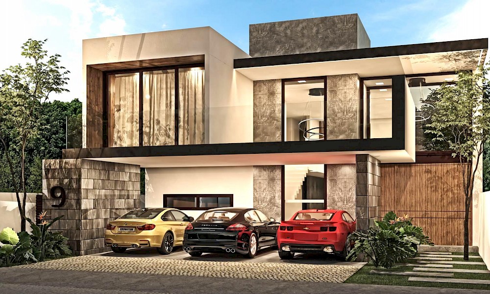Este modelo se caracteríza por brindarnos una distribución armoniosa con una doble altura en el área de sala-comedor, 4 habitaciones, una de ellas situada en planta baja para mayor comodidad, y tres en planta alta, junto con un espacio de sala de TV.