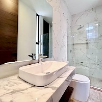 Esta residencia se caracteriza por su armonioso diseño de una sola planta, tener tres habitaciones con baño y clóset cada una, además de brindar excelentes acabados y equipamiento completo.