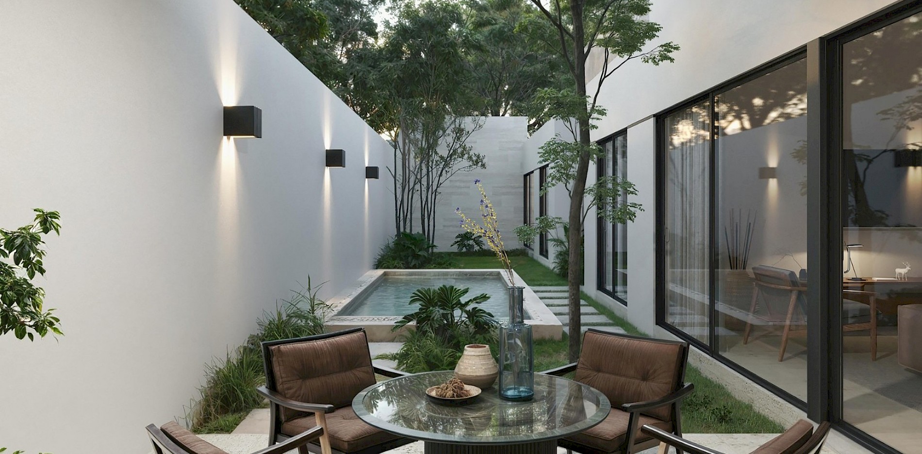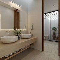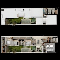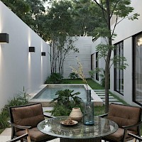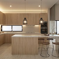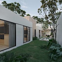 Esta residencia se caracteriza por su armonioso diseño de una sola planta, el área de sala-comedor a doble altura, nos brindará una mayor sensación de amplitud y ventilación. Además de tener 3 habitaciones, cada una con baño propio, la principal destacando por su amplio clóset vestidor.