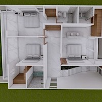 El modelo 192 se caracteriza por tener una distribución en dos plantas con cuatro amplias habitaciones, una de ellas en planta baja para mayor comodidad.