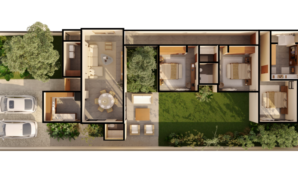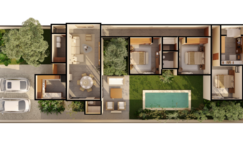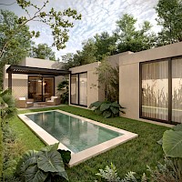 La privada contará con únicamente 16 lotes y amenidades como cancha de pádel, terraza de usos múltiples, entre otros. El modelo Maja se caracteriza por tener la distribución de sus espacios en un solo nivel con tres habitaciones y área de jardín con piscina.